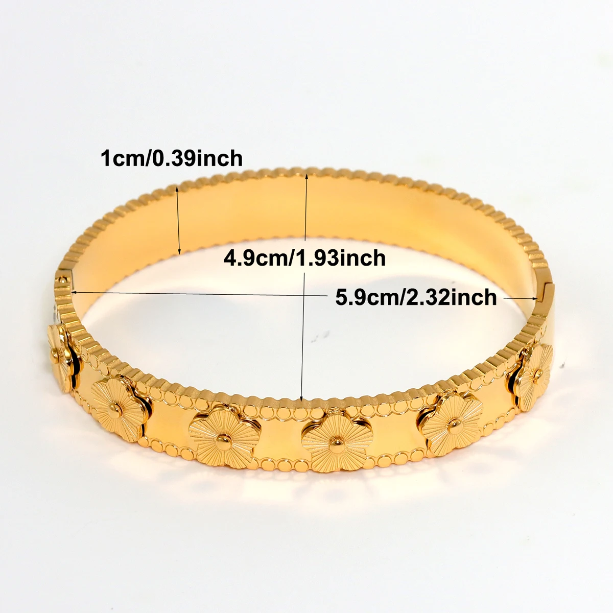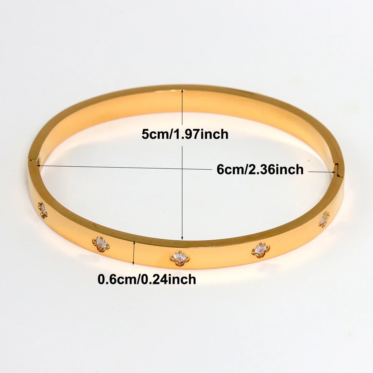الحجم: القطر الداخلي 5.9 سم، المحيط الداخلي حوالي 17.5 سم.